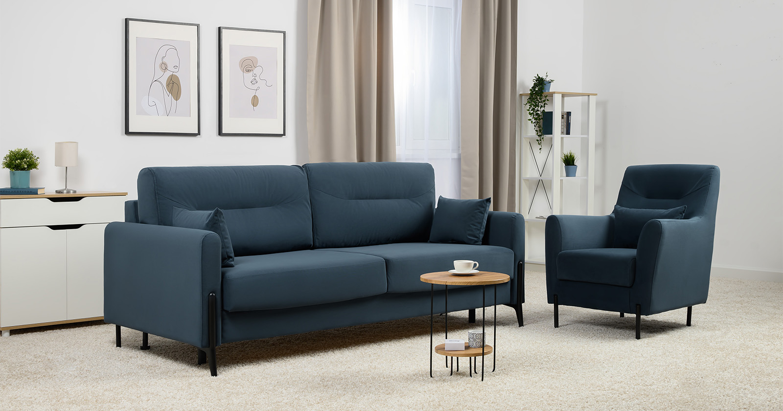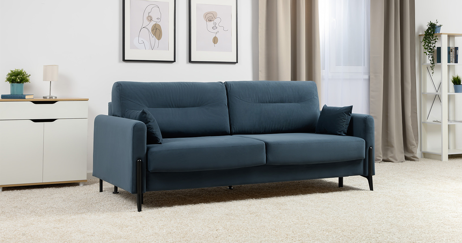 Барселона - современный диван, стиль которого удачно подчеркнут элегантными металлическими опорами.