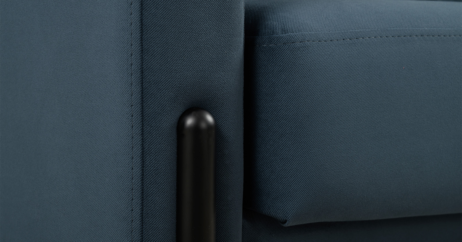 Металлические опоры плавно переходят в декоративный элемент подлокотника. Декоративная утяжка по приспинным подушкам