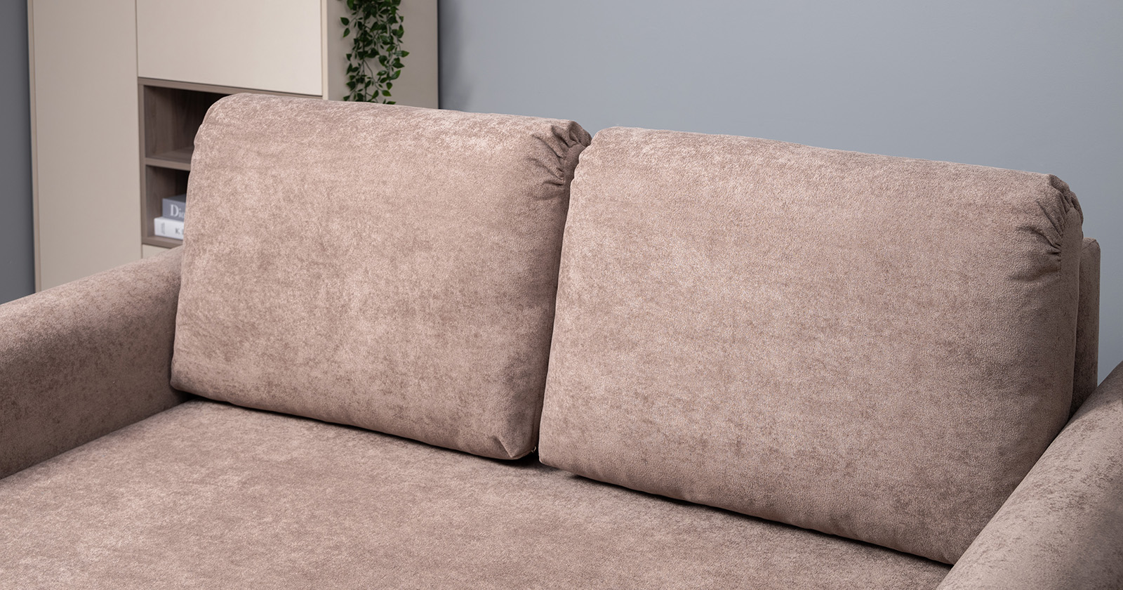 Декоративные утяжки и складки на подлокотниках придают дивану неповторимый шарм, который станет изюминкой любого интерьера — от классического до современного. Приспинные подушки со сборкой в верхней части.