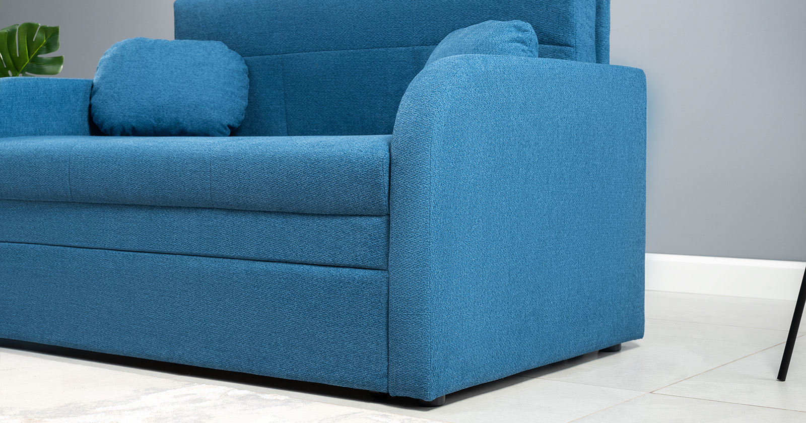 Коллекция выполнена в современном минималистичном стиле с мягкой обивкой из износостойкой ткани и декоративной стежкой, подчеркивающей геометрию форм. Механизм трансформации обеспечивает дополнительное спальное место, делая мебель не только эстетичной, но и максимально функциональной для небольших пространств.