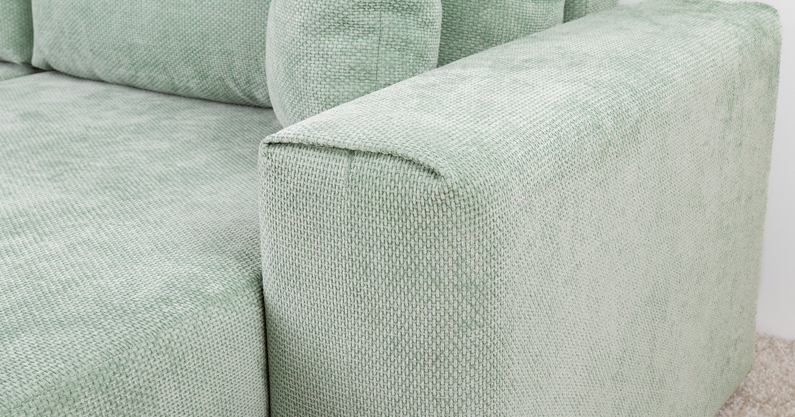 Диван-кровать угловой Оксфорд 715 композиция 1, шенилл STORM 9 мятный, модульная система, сборка на любую сторону