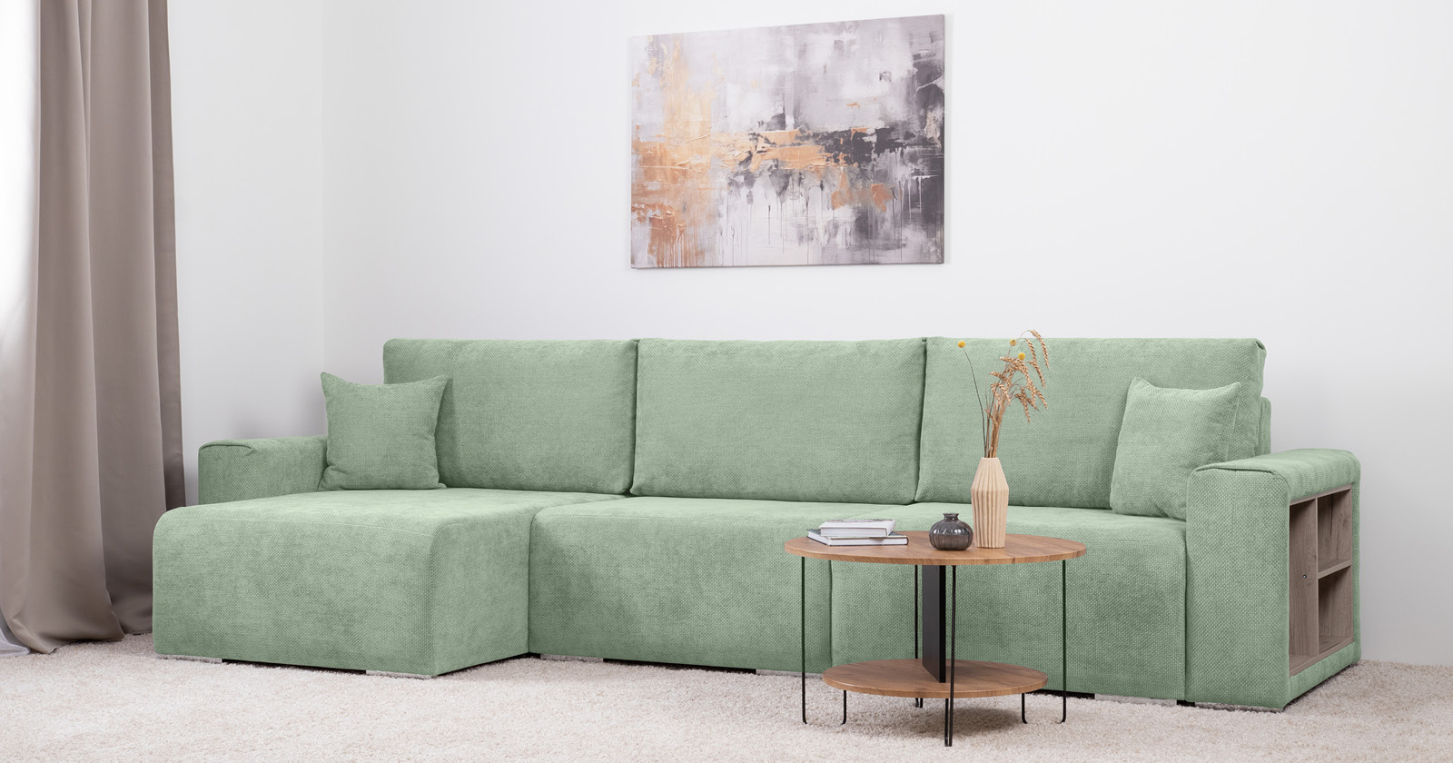 Диван-кровать угловой Оксфорд 715 композиция 2, STORM 9 мятный, модульная система, сборка на любую сторону