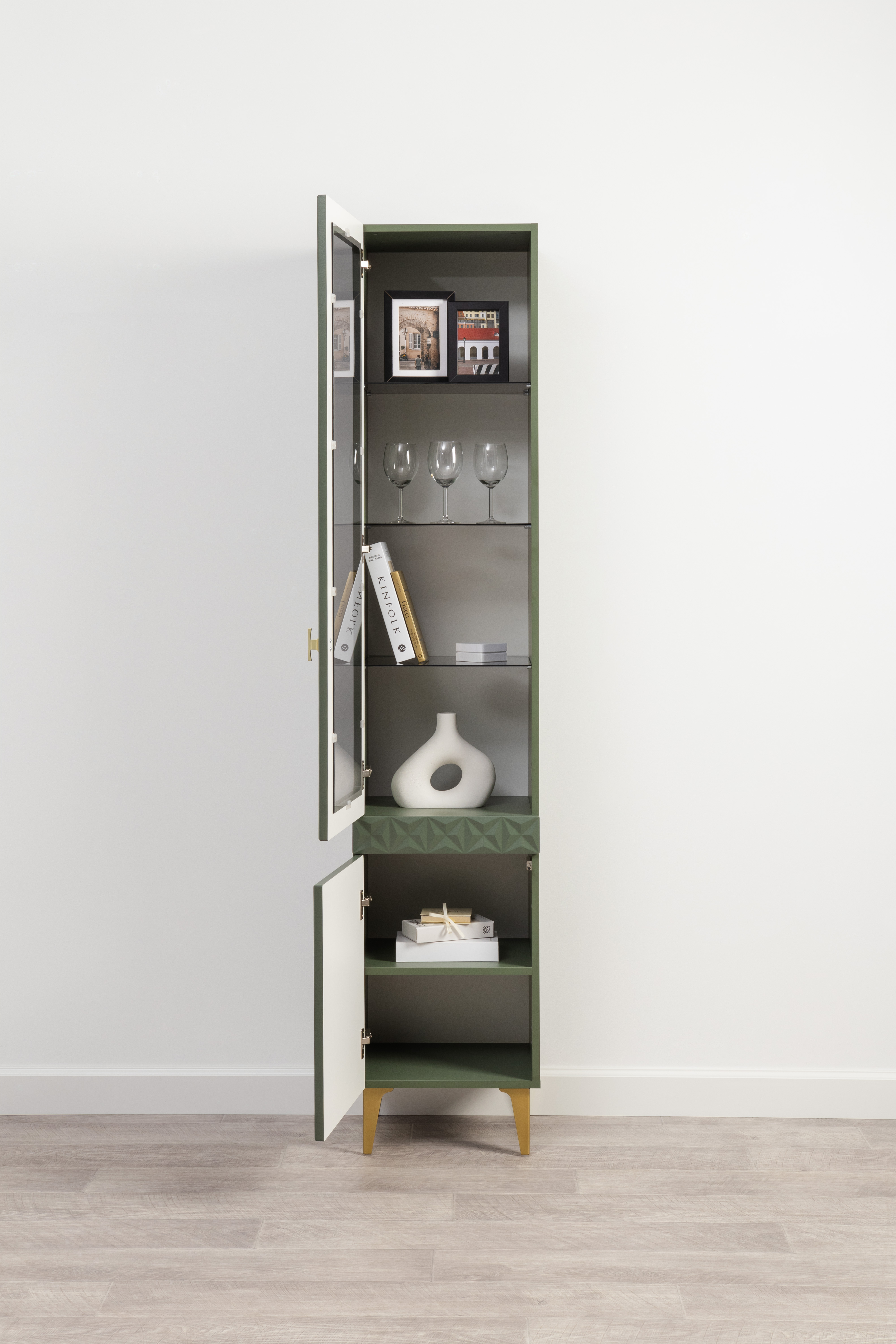 Шкаф-витрина Марион 16.397.02 дымчатый зеленый K521, олива шагрень AG 1050 ПВХ
