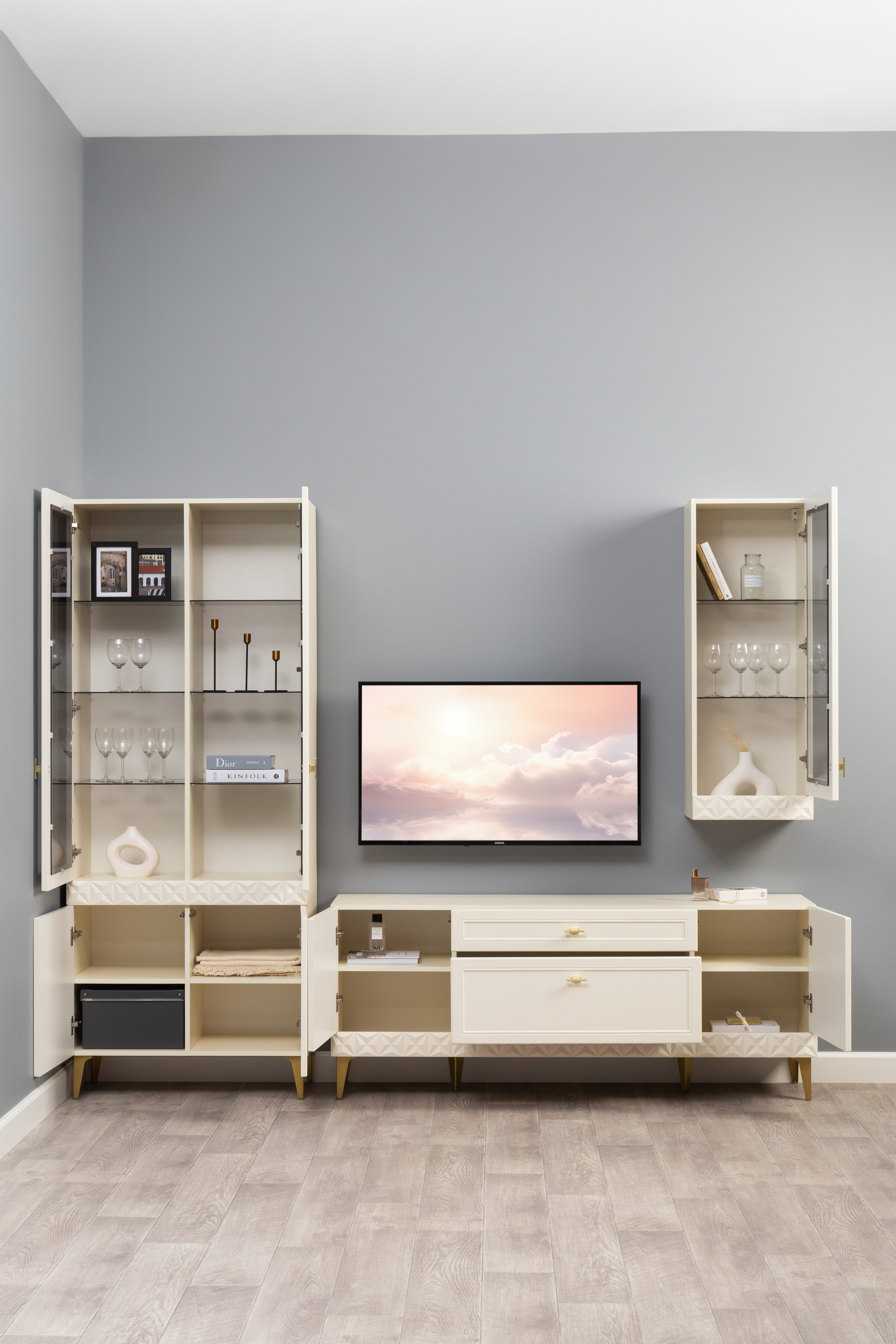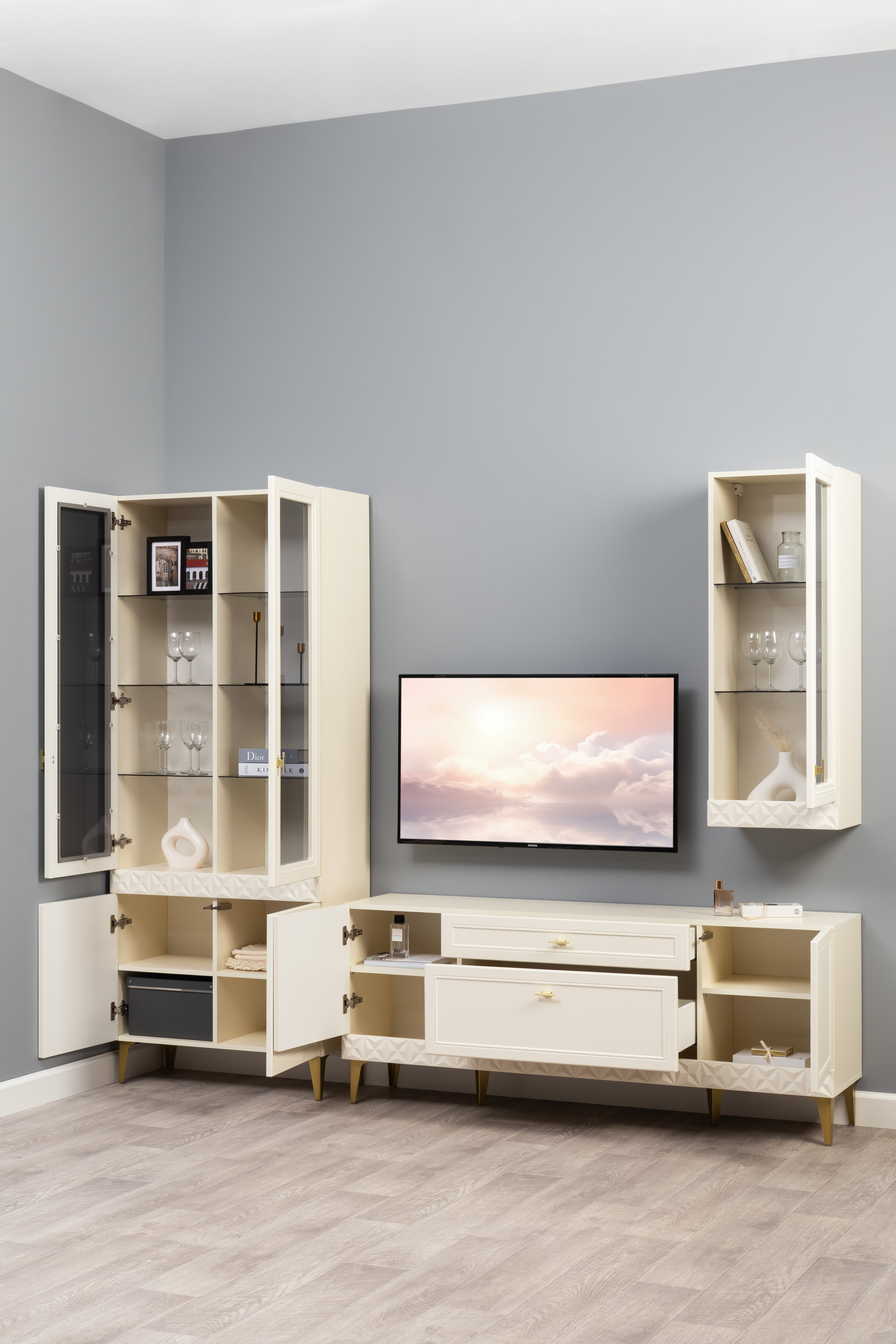 Гостиная Марион композиция 1 слоновая кость С341 PE, слоновая кость 6898 ПВХ, белый PE шагрень (собирается на любую сторону)