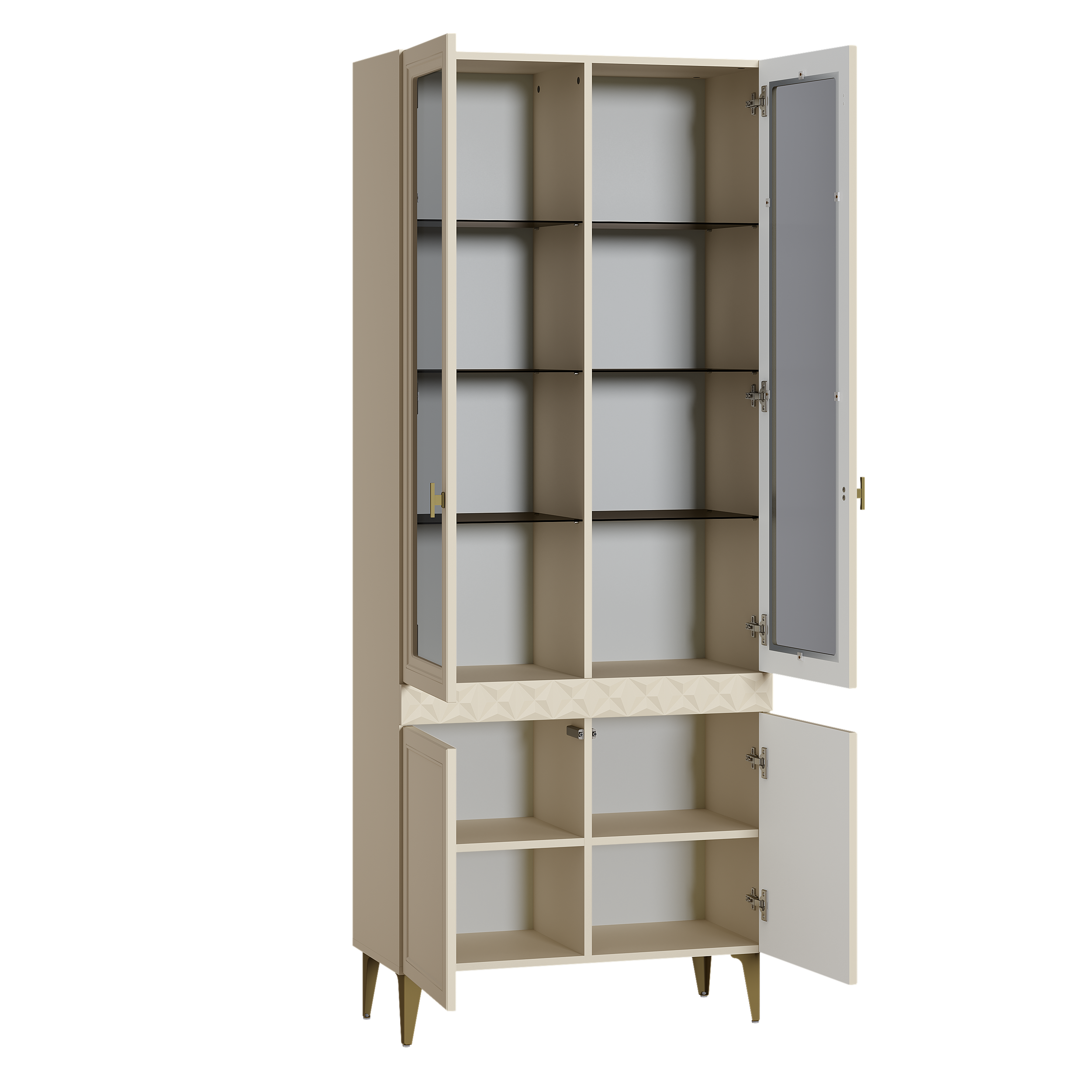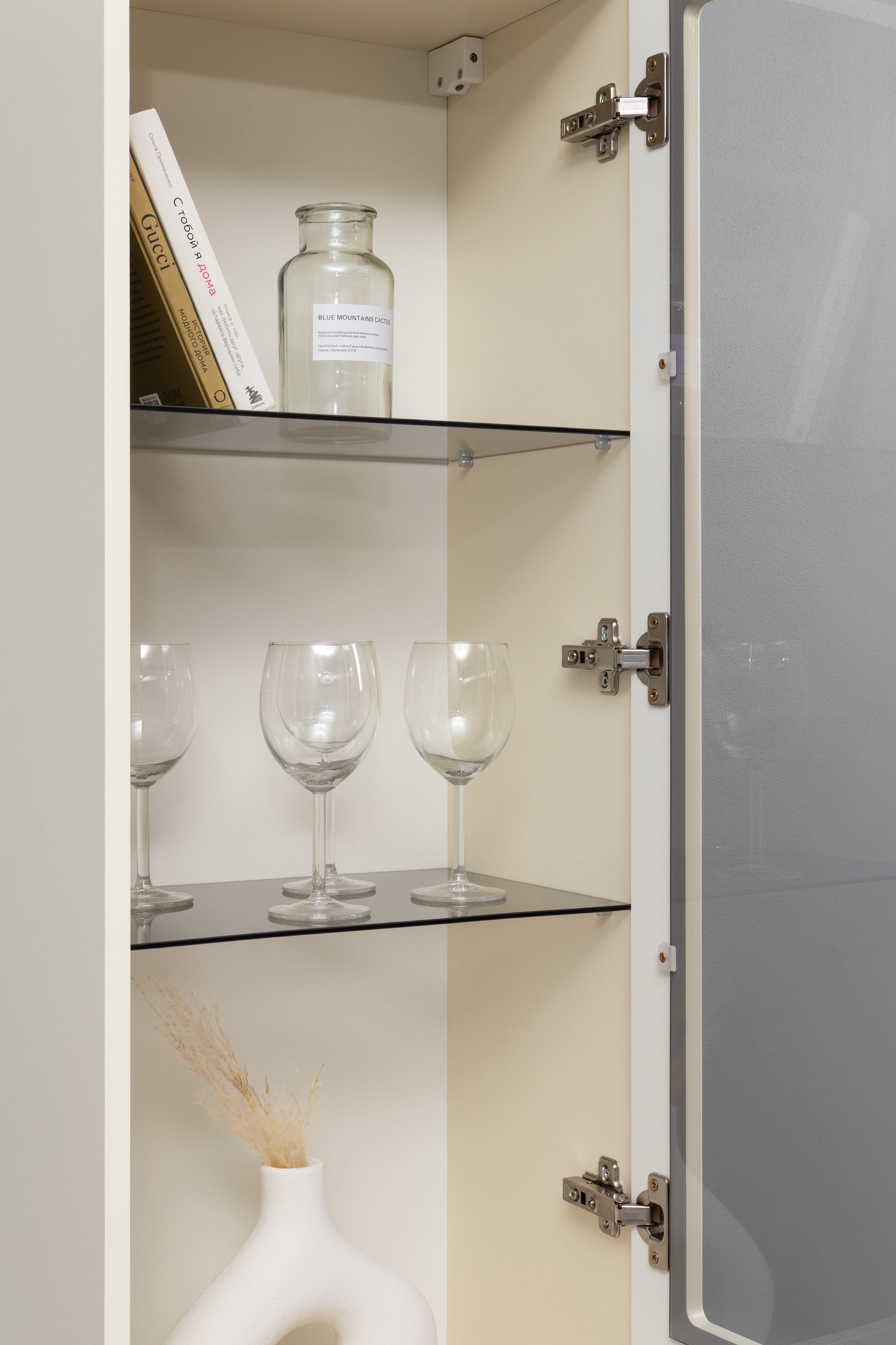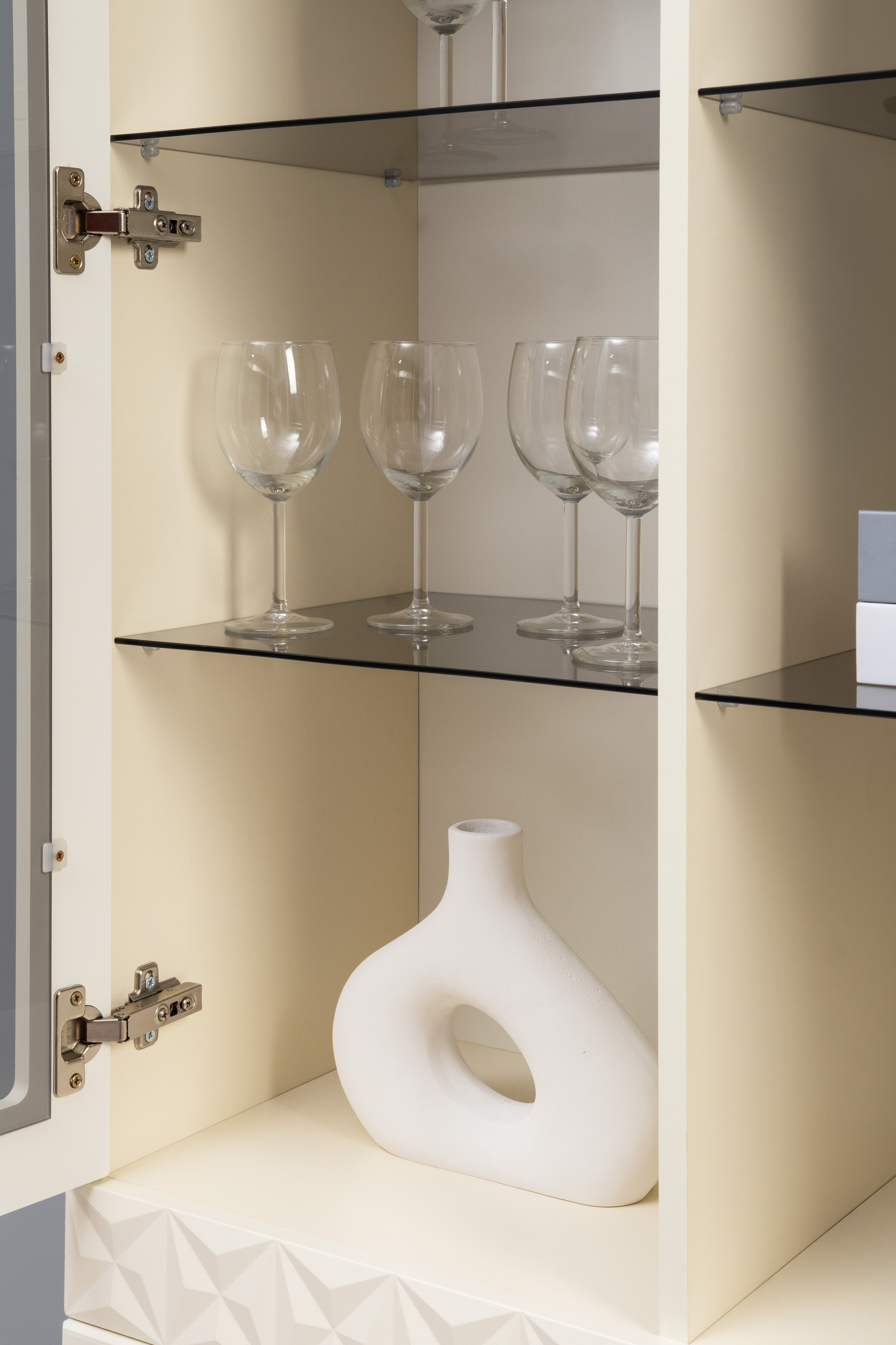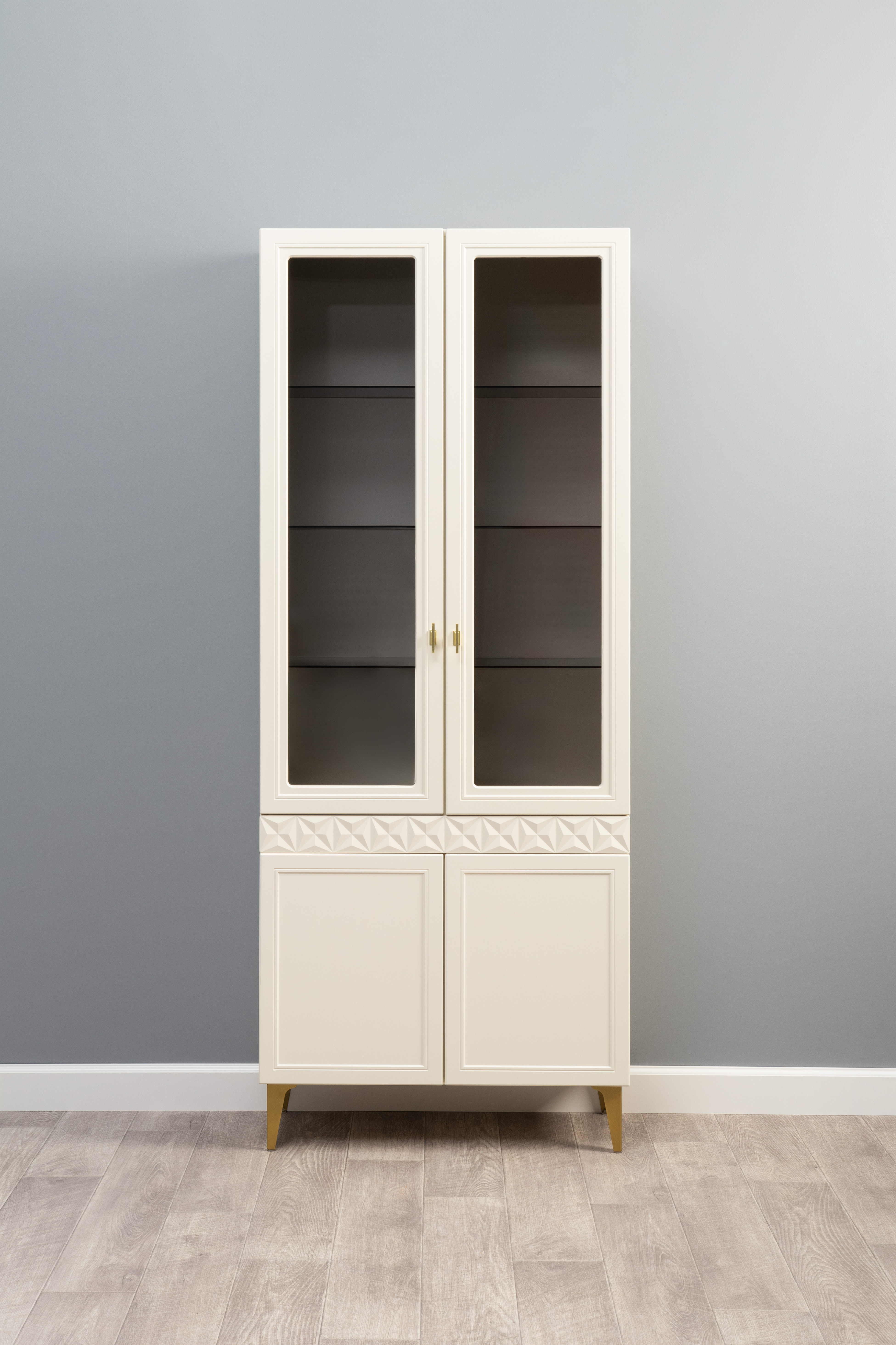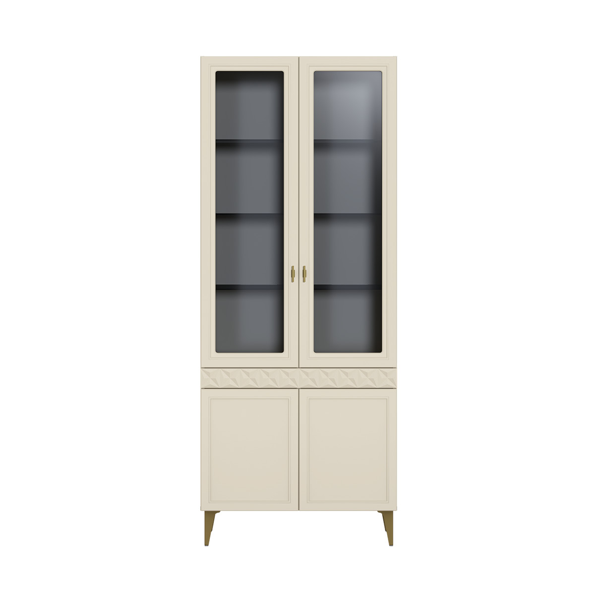 Шкаф-витрина Марион 16.397.01 слоновая кость С341 PE, слоновая кость 6898 ПВХ (собирается на любую сторону)