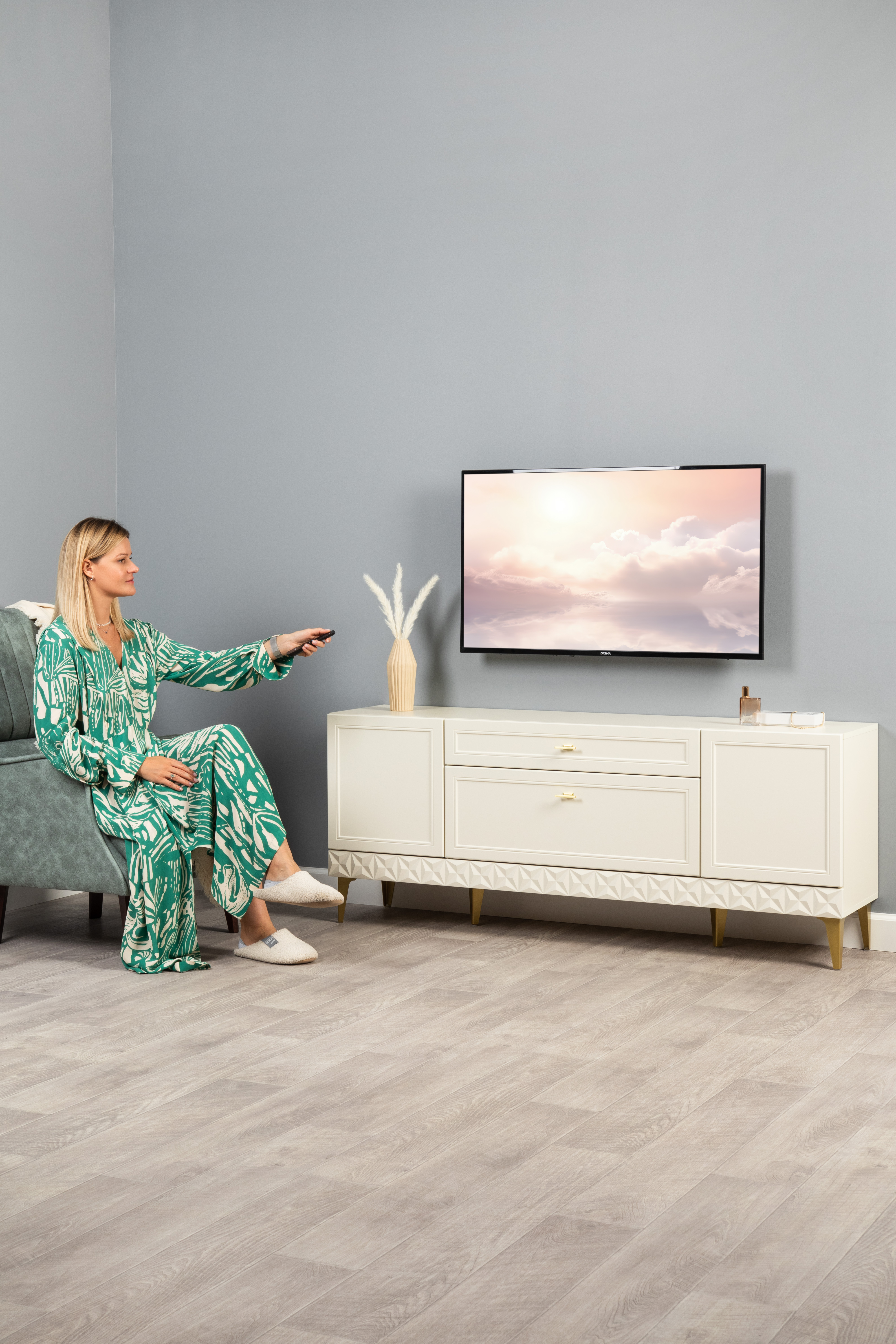 Гостиная Альба композиция 1 дуб золотой CRAFT, белый премиум, без подсветки