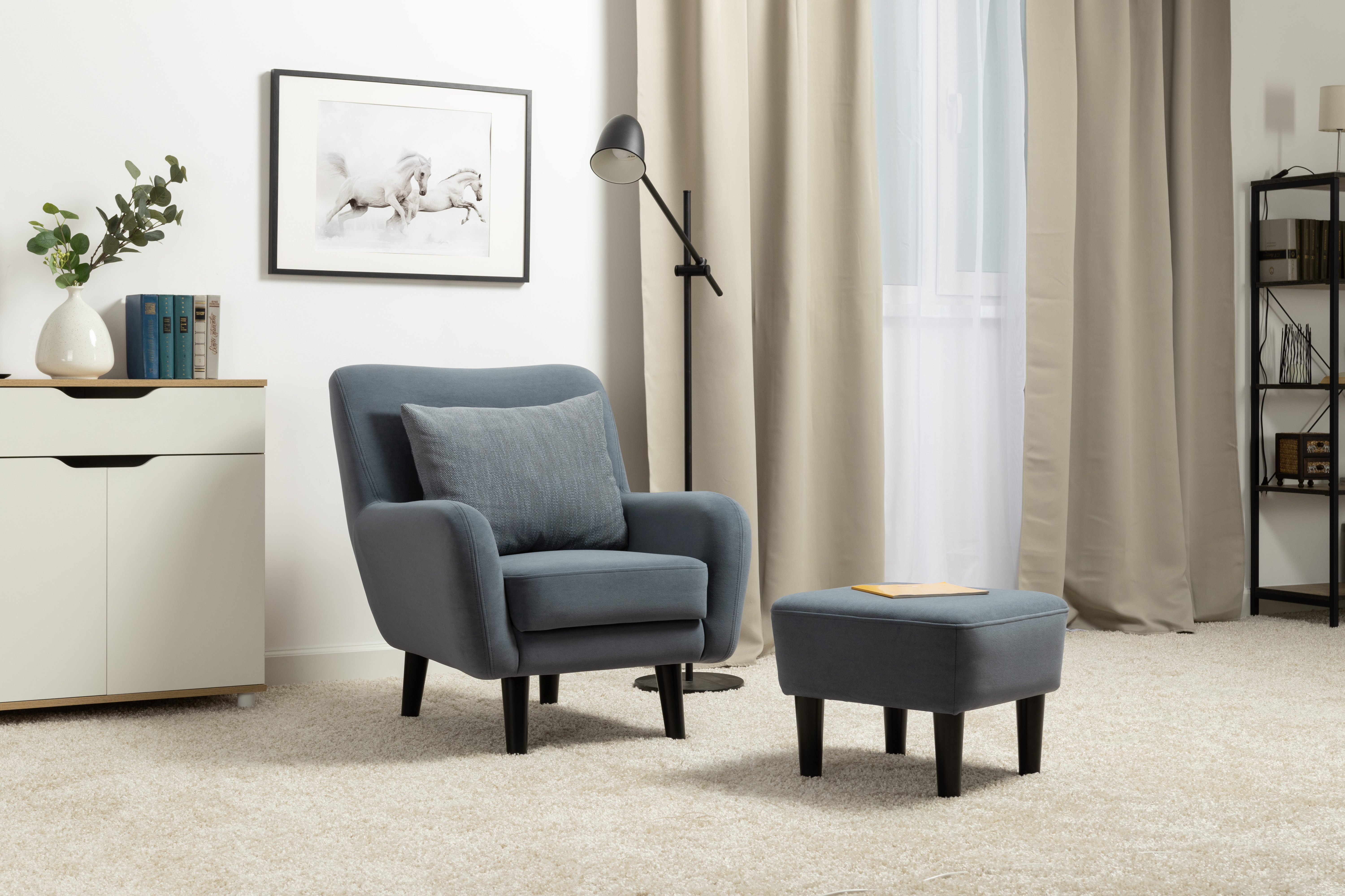Стильное и уютное кресло Дакота с высокими опорами из массива станет акцентом интерьера вашей гостиной или спальни. Объемная приспинная подушка для комфортной посадки.