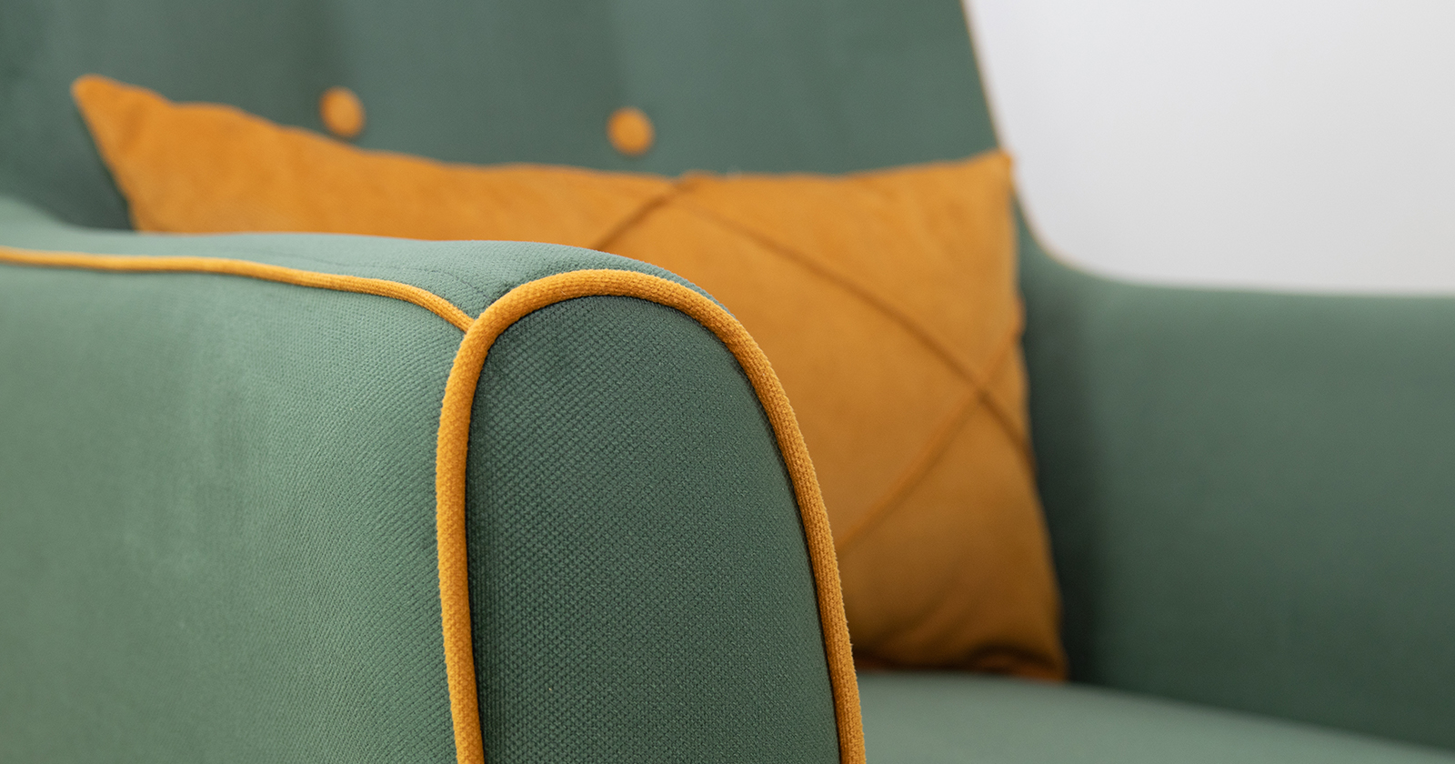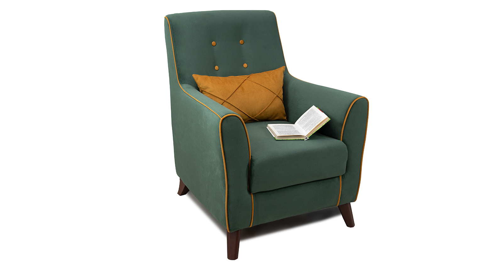 Декоративный кант на кресле, защипы на декоративной подушке, пуговицы на спинке