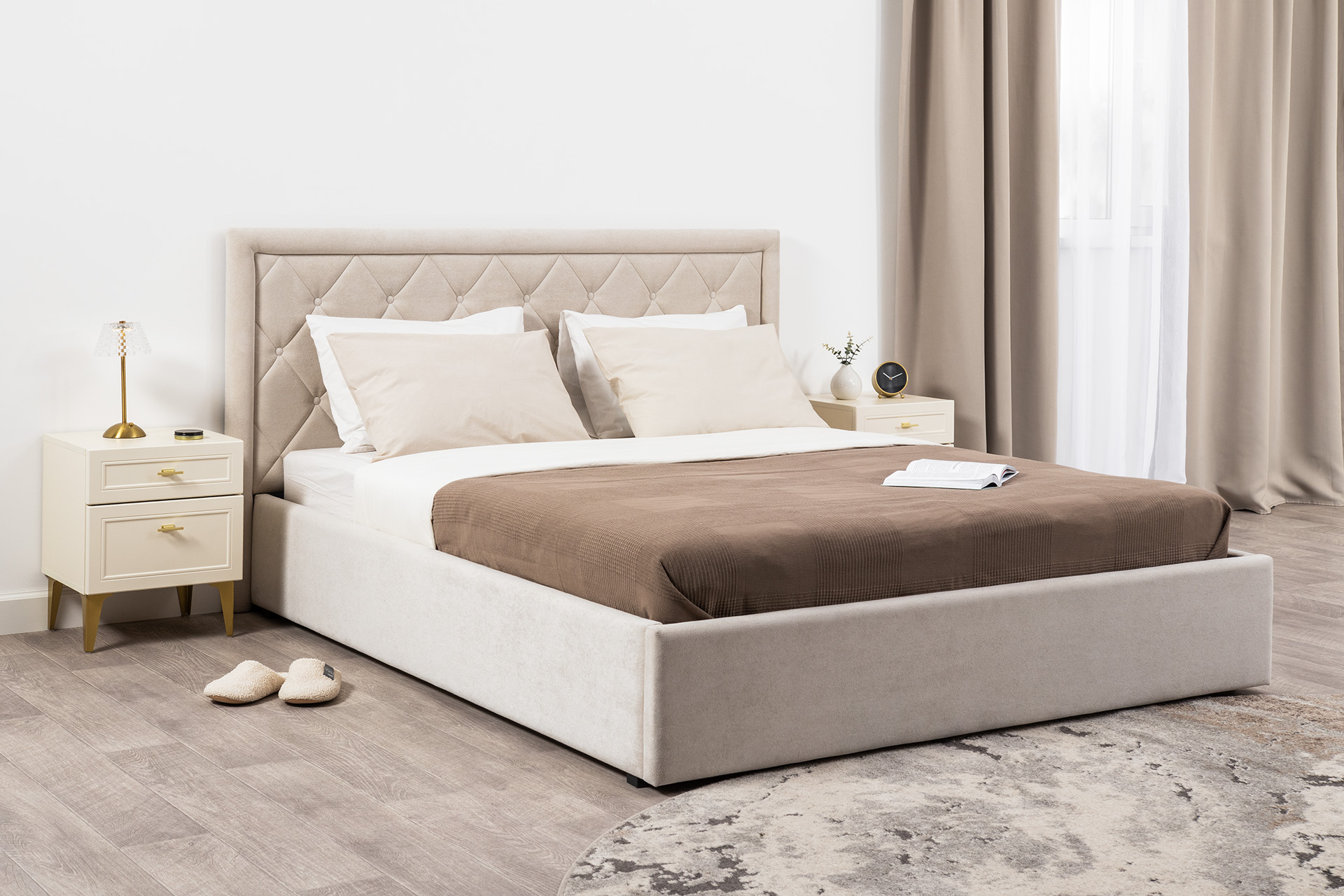 Кровать Марион — это идеальное сочетание стиля и комфорта. Элегантное изголовье оформлено стежкой в виде классической каретной стяжки, украшенной декоративными пуговицами, что придаёт изделию выразительный и утончённый вид. По всему периметру кровати проходит аккуратный валик, подчеркивающий геометрию и завершённость формы.