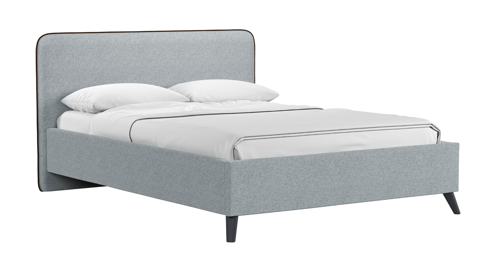 Cкругленный торец изголовья оформлен контрастным кантом.