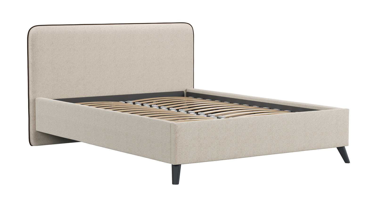 Cкругленный торец изголовья оформлен контрастным кантом.
