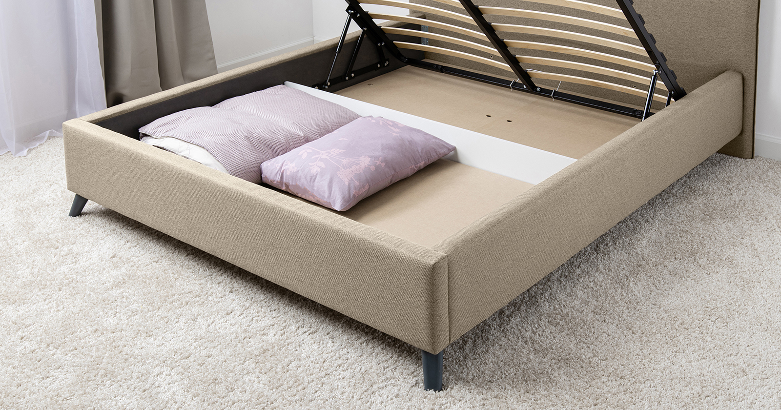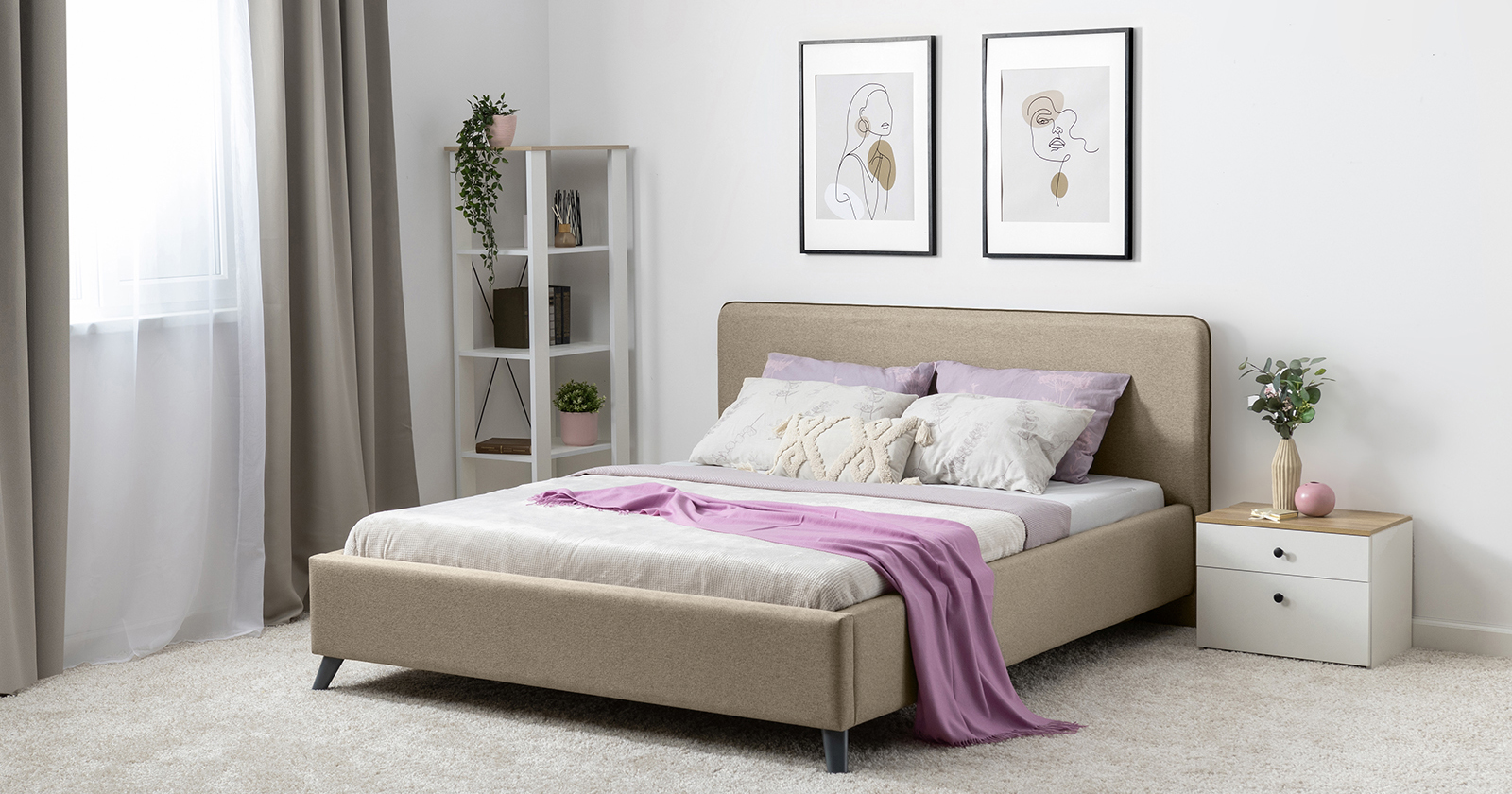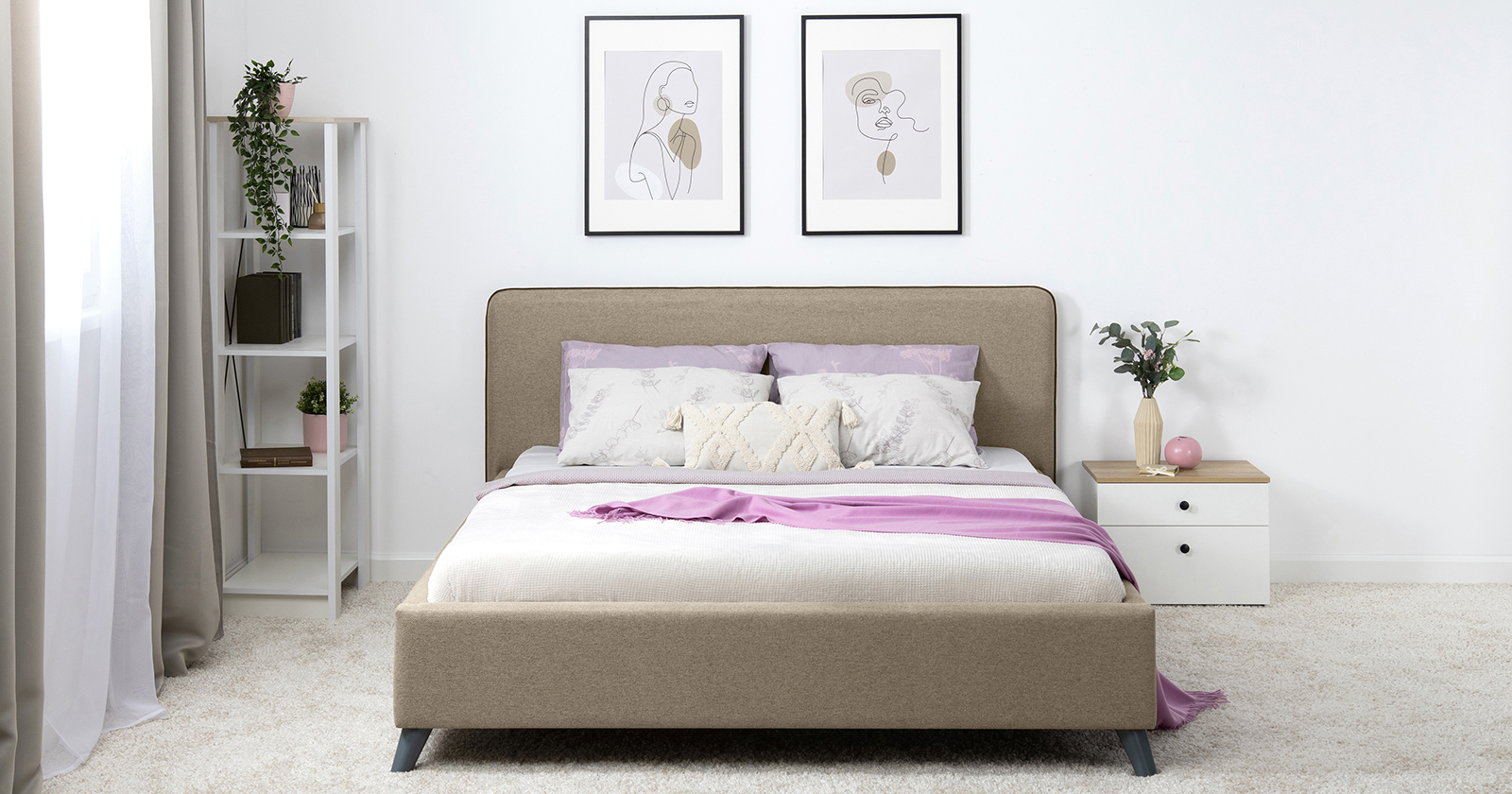 Лаконичный дизайн, гладкая и приятная на ощупь рогожка, широкий выбор пастельных оттенков, высокие опоры — модная кровать МИА порадует сторонников скандинавского стиля.
