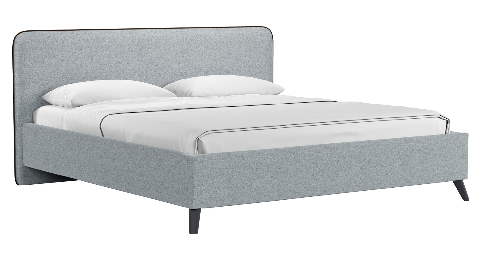 Cкругленный торец изголовья оформлен контрастным кантом.