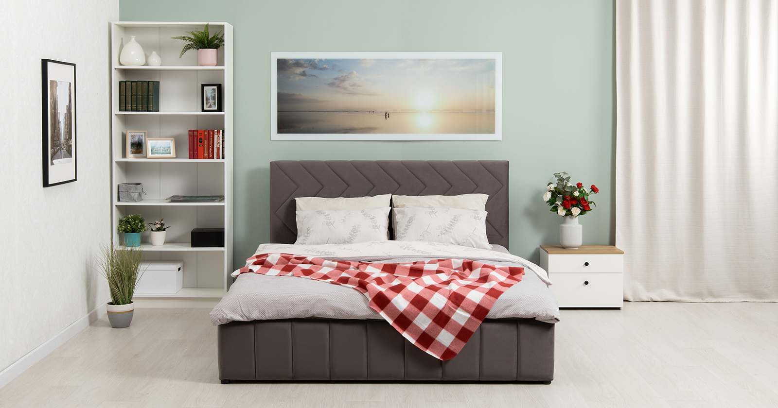 Кровать Милана 180 велюр серо-коричневый с ортопедическим основанием и подъемным механизмом