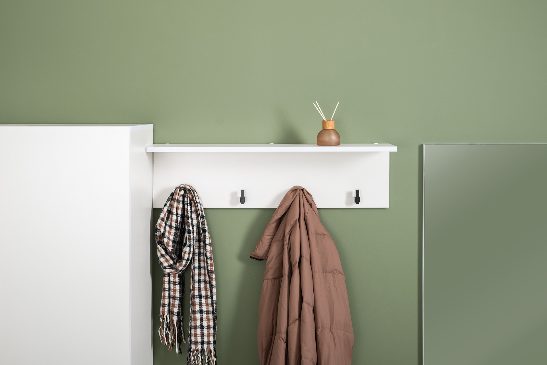Нейтральный белый цвет визуально расширит ограниченное пространство прихожей.