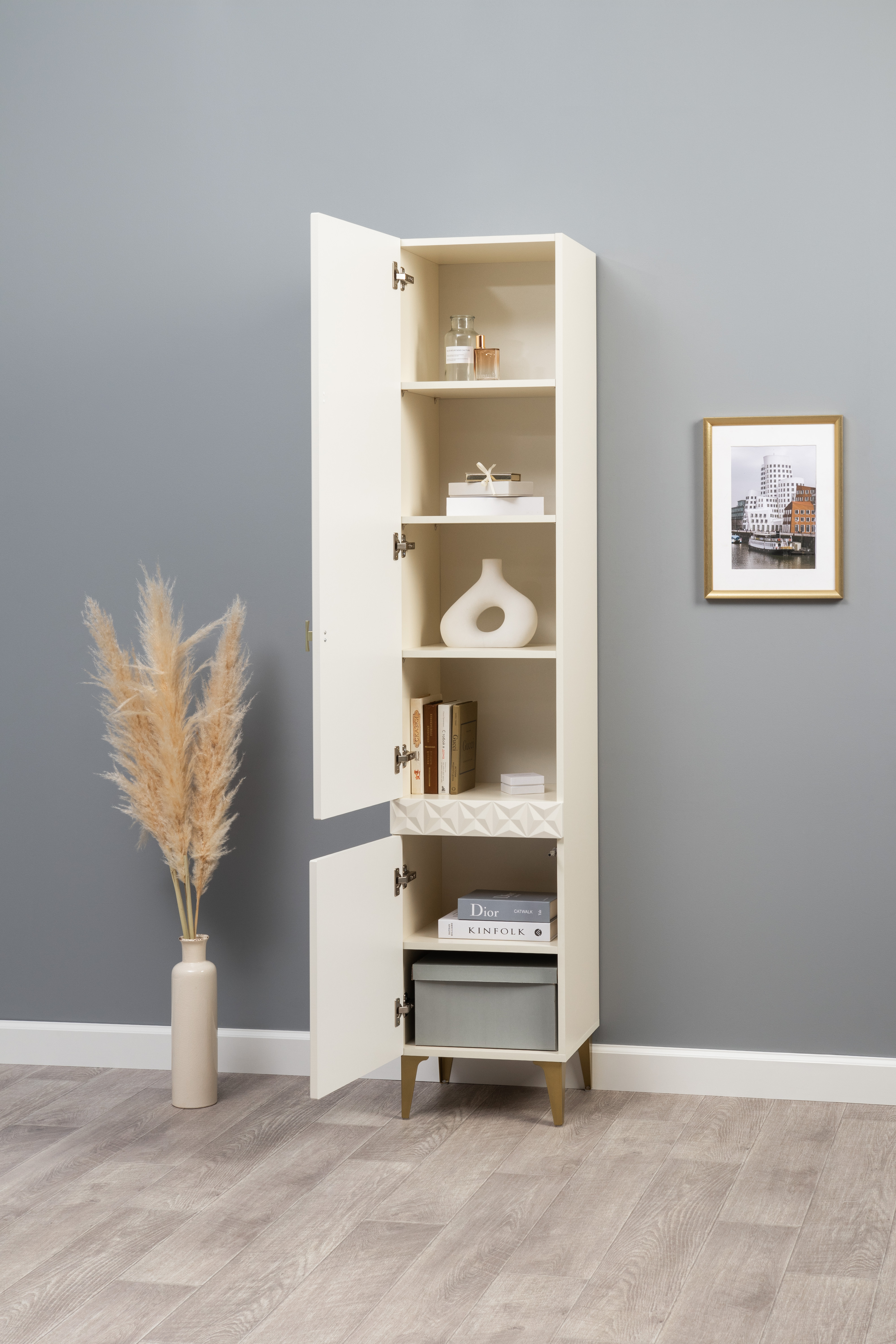 Шкаф-пенал Марион 16.333.01 слоновая кость С341 PE, слоновая кость 6898 ПВХ (собирается на любую сторону)