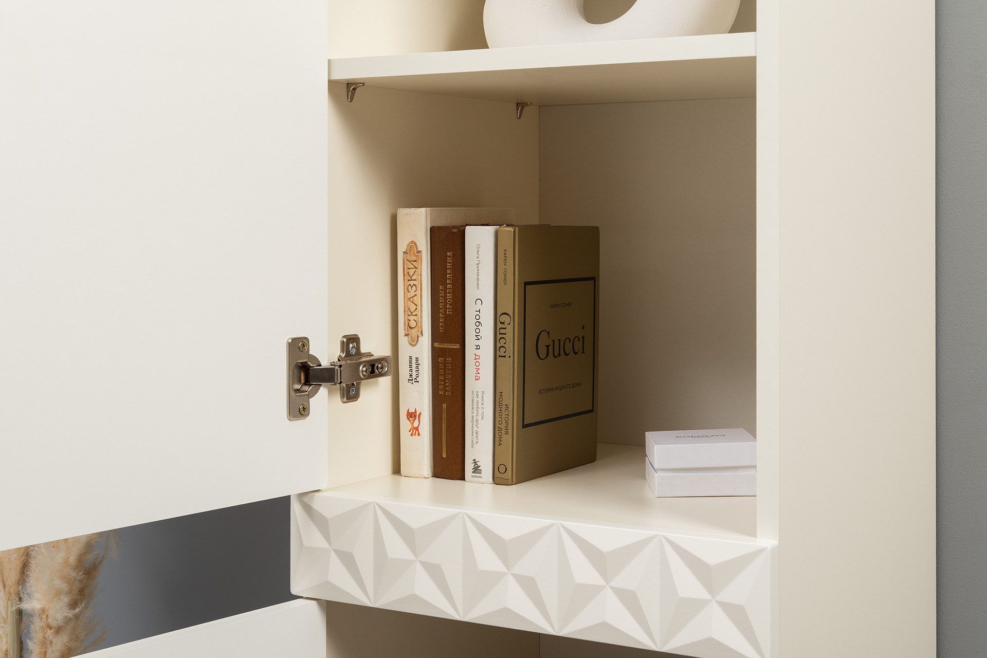 В коллекции представлены три типа витрин с тонированным закалённым стеклом, которые придают пространству лёгкость и свет. «Марион» — идеальное сочетание традиций и актуального дизайна в каждой детали.