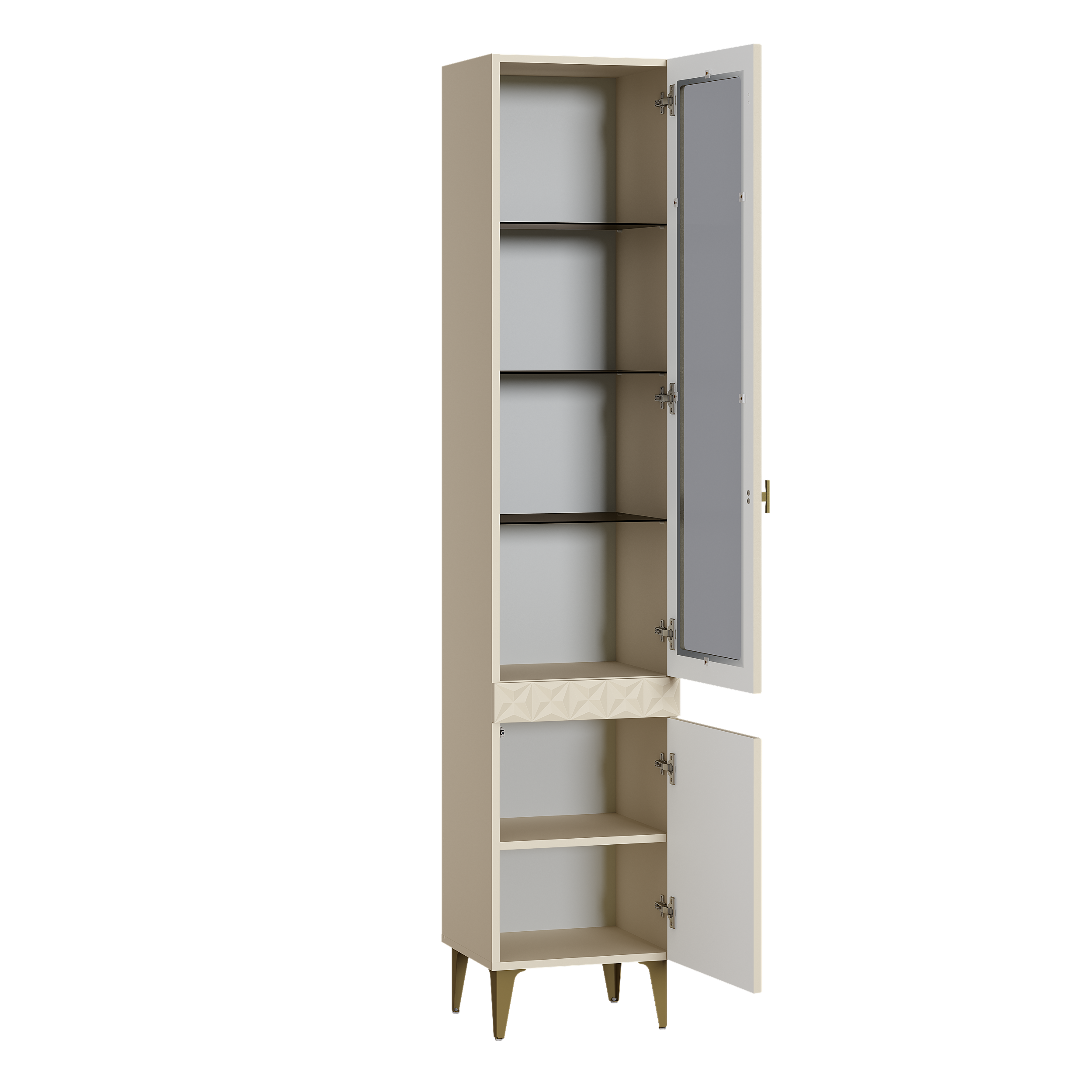 В коллекции представлены три типа витрин с тонированным закалённым стеклом, которые придают пространству лёгкость и свет. «Марион» — идеальное сочетание традиций и актуального дизайна в каждой детали.