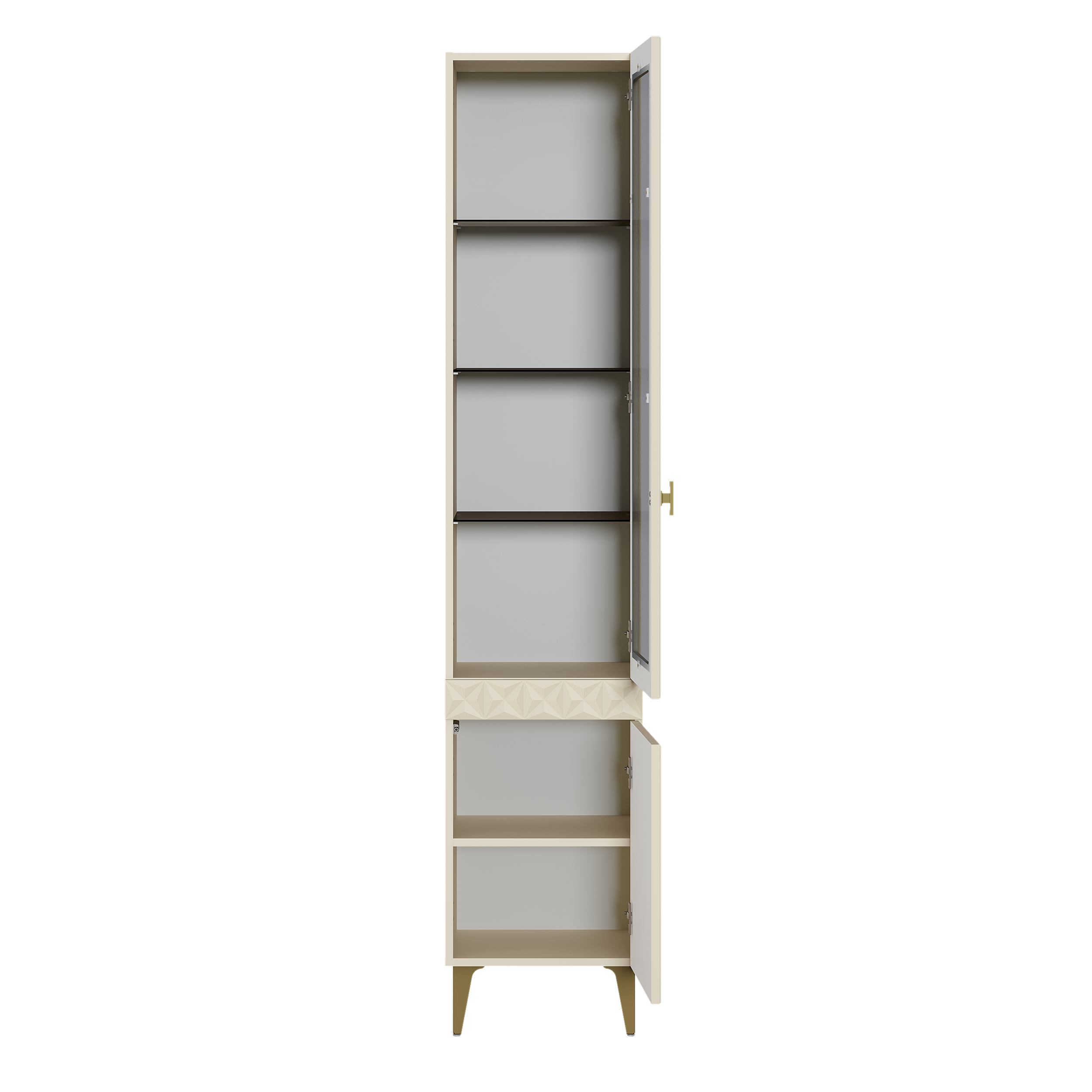 Шкаф-витрина Марион 16.397.01 слоновая кость С341 PE, слоновая кость 6898 ПВХ (собирается на любую сторону)