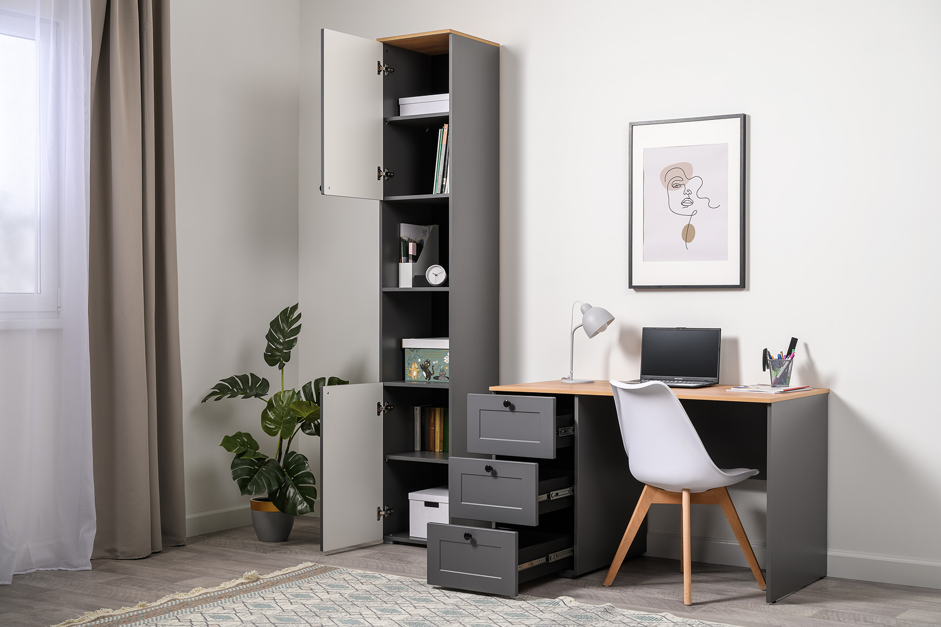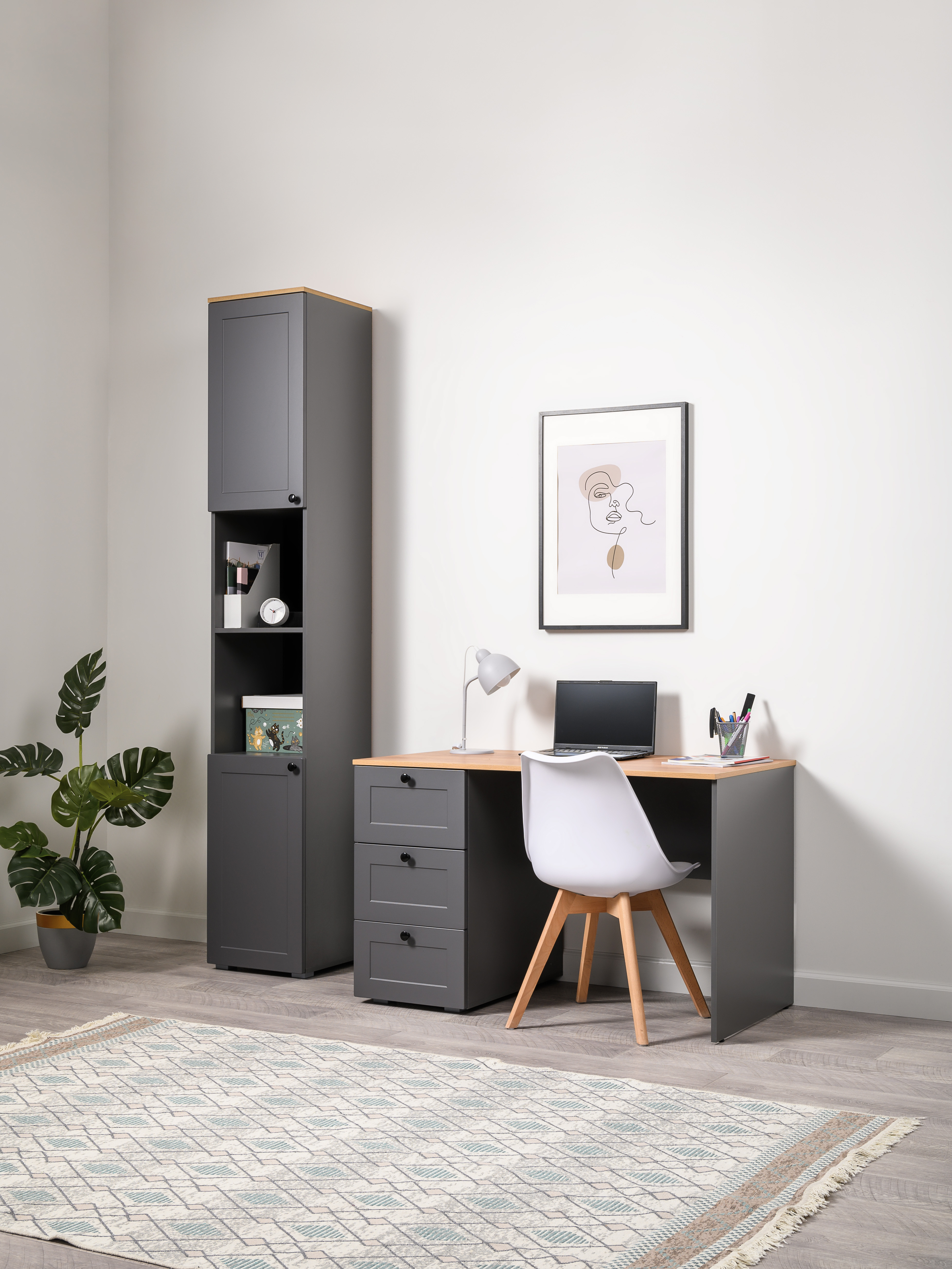 Шкаф-пенал Остин 13.225 серый графит, дуб вотан, серый графит ПВХ