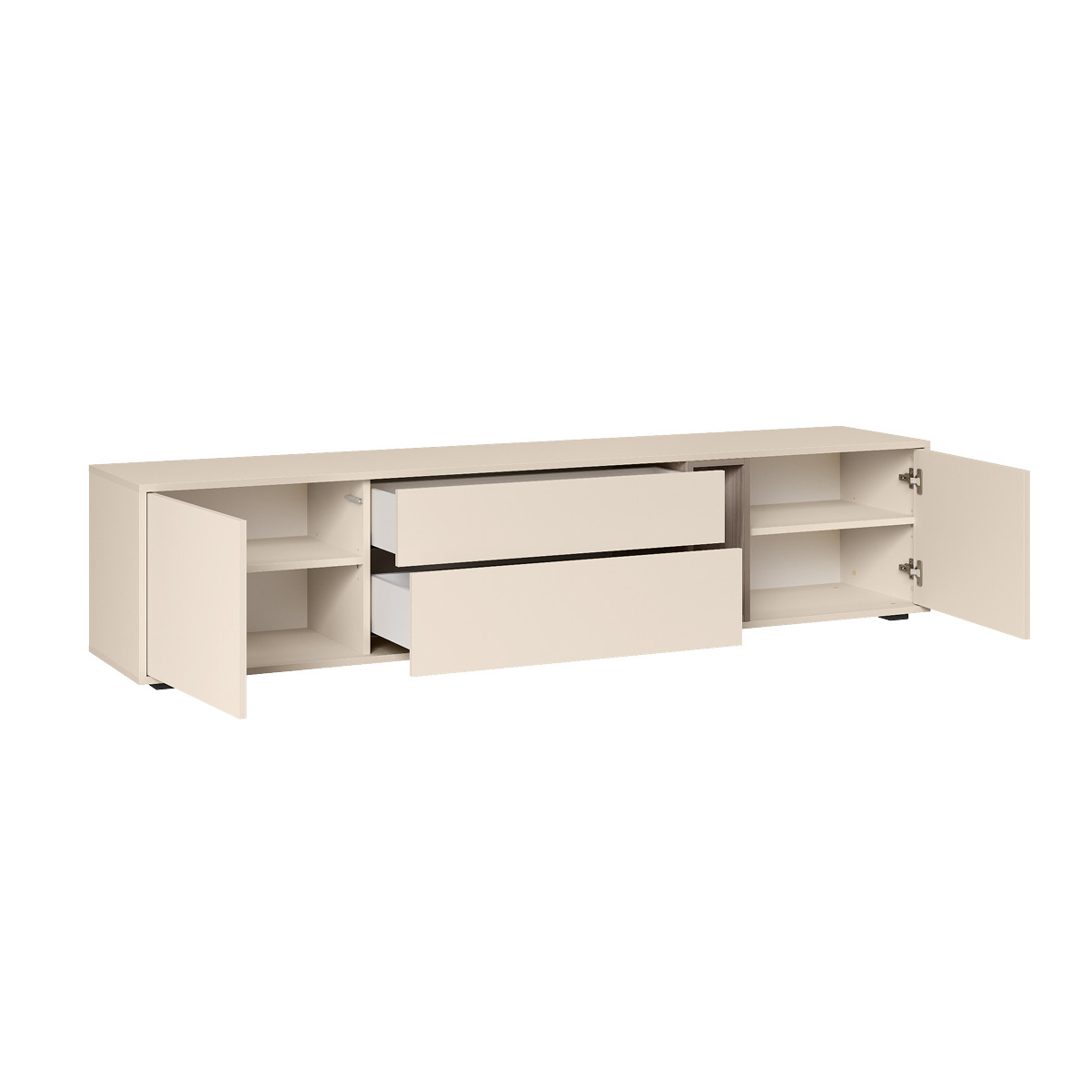Тумба под ТВ в гостиную Петра 13.281 белый PE шагрень, милк софт ПВХ, бетон чикаго беж ПВХ