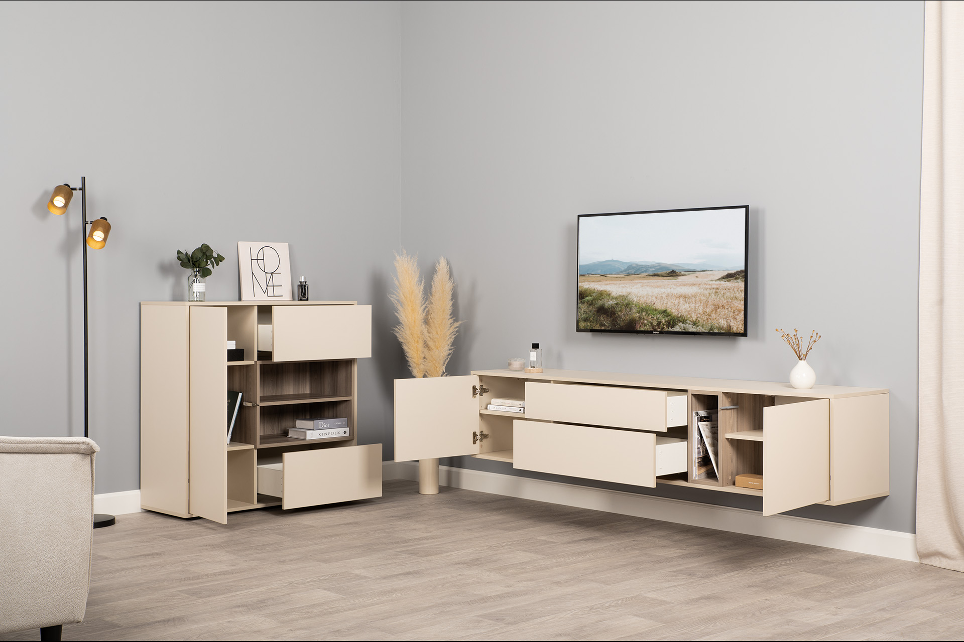 Тумба под ТВ в гостиную 13.267.03 белый PE шагрень, альберо, милк софт ПВХ