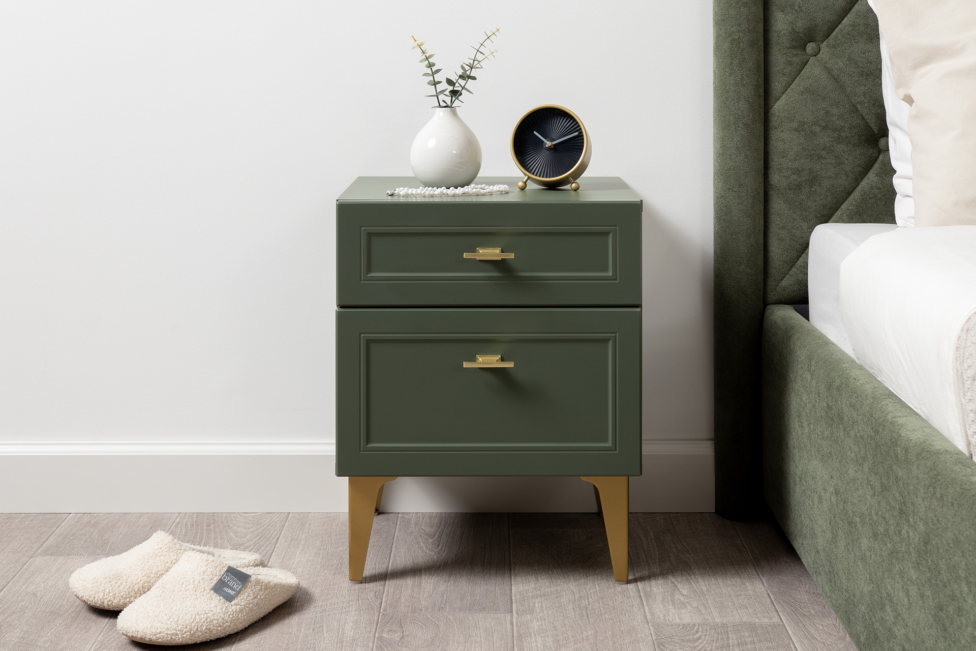Тумба прикроватная Марион 16.14 дымчатый зеленый K521, олива шагрень AG 1050 ПВХ, белый PE шагрень