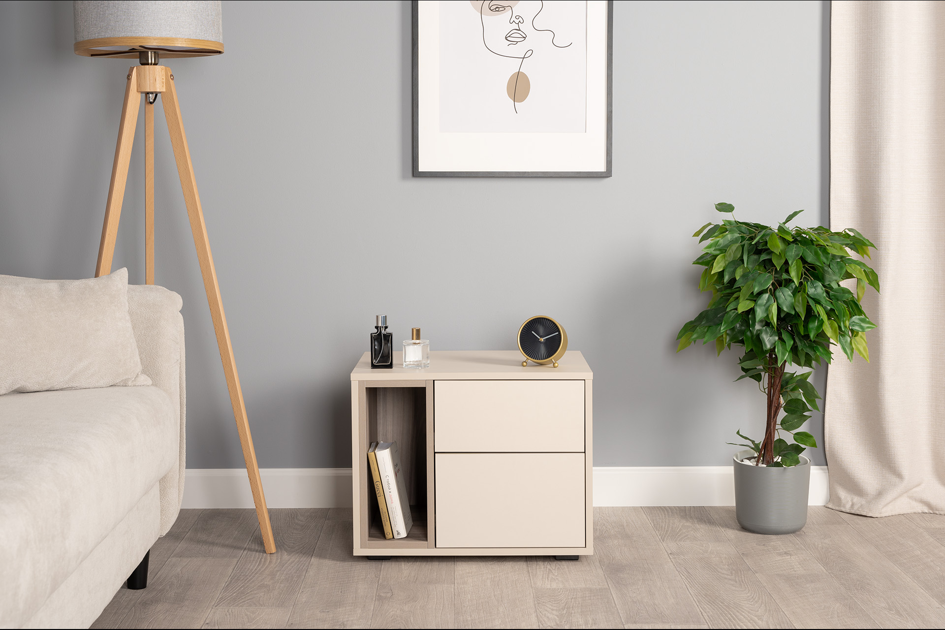 Тумба прикроватная Лакки бук песочный, дуб тортуга ПВХ, белый глянец ПВХ